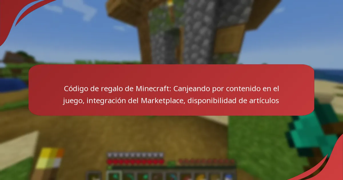 El Mercado de Minecraft permite a los jugadores canjear códigos de regalo por varios contenidos dentro del juego, mejorando su experiencia de juego. Estos códigos se pueden usar para comprar skins, paquetes de texturas y otro contenido descargable, integrándose sin problemas con el ecosistema general del Mercado.